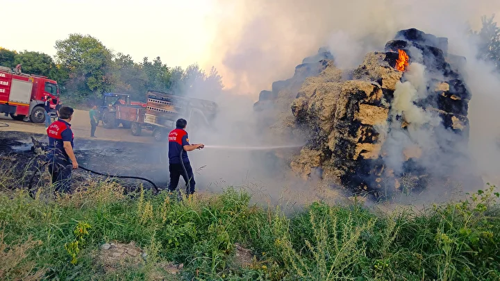 Taşova Belediyesi İtfaiye ekiplerince söndürülen yangında, bin balya saman ve bir araç kullanılamaz hale geldi.