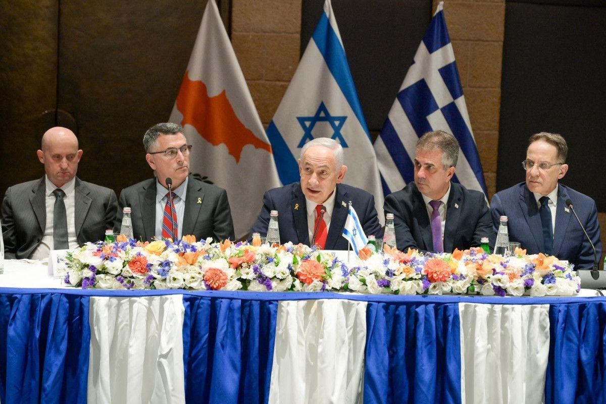 Batı Kudüs’te bir araya gelen İsrail Başbakanı Binyamin Netanyahu, Yunanistan Başbakanı Kiryakos Miçotakis ve Güney Kıbrıs Rum Kesimi (GKRY) lideri Nikos Hristodulidis ortak basın toplantısı düzenledi.