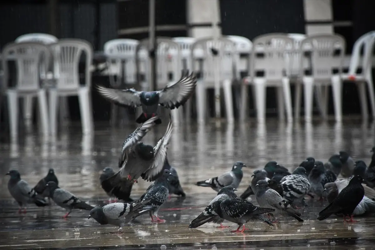 Bazı vatandaşların yağış altında günlük işlerini sürdürmeye çalıştığı gözlendi.